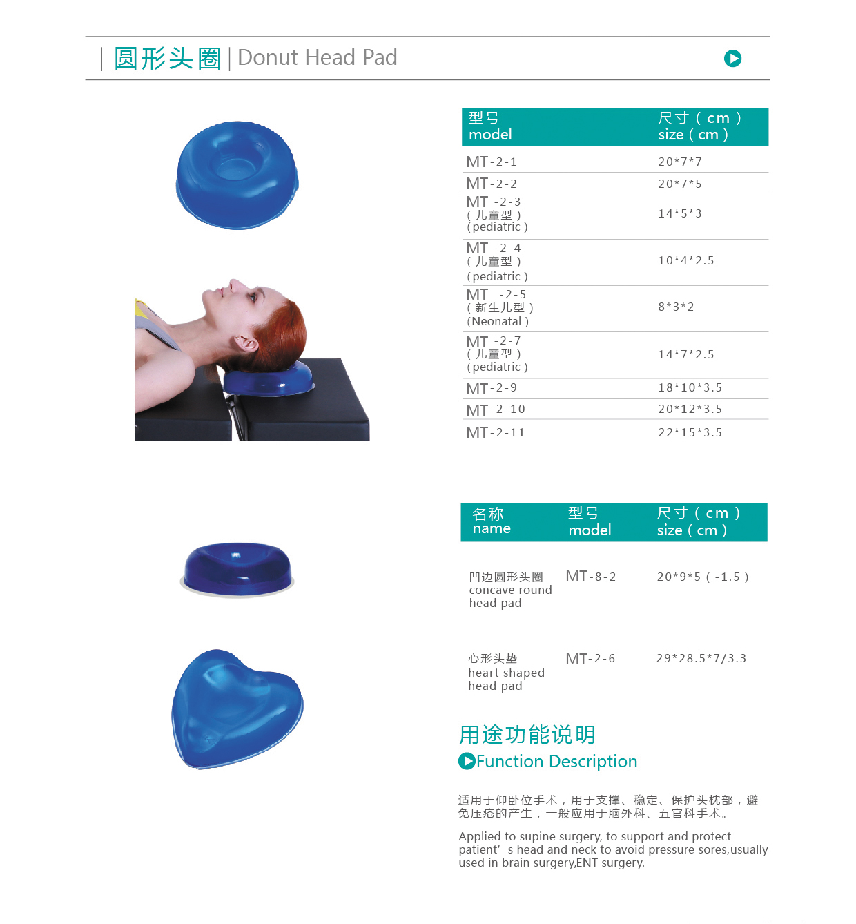 【產(chǎn)品用途】:適用于仰臥位手術(shù),用于支撐、穩(wěn)定、保護(hù)頭枕部,避免壓瘡的產(chǎn)生。